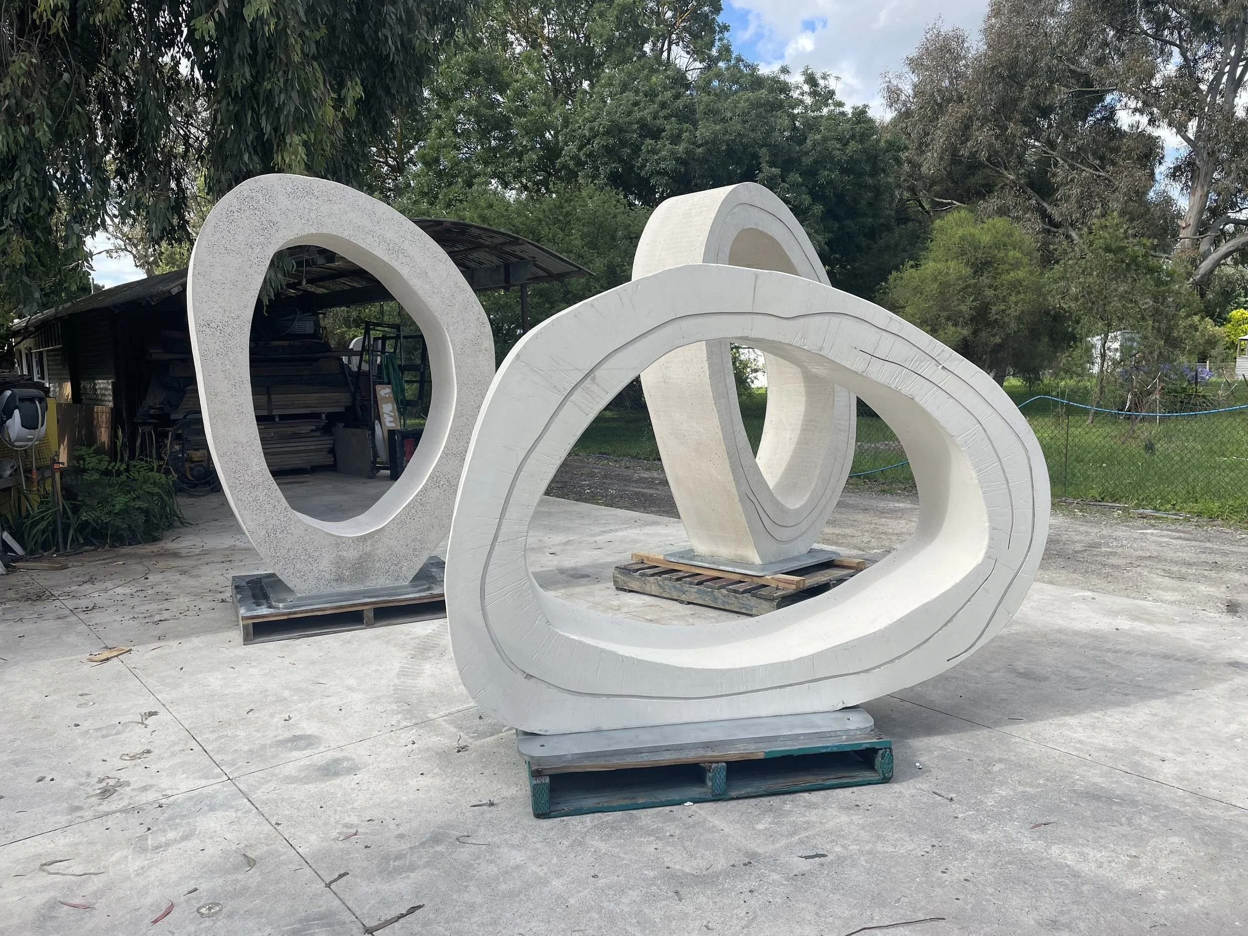 The project responds to the unique characteristics and constraints of three different sites, using a consistent sculptural form derived from Jonathan’s hand-drawn impressions of each location. The selected design, when placed upright, becomes an elliptical frame—inviting interaction, framing the viewer within the “field of play,” and symbolising inclusion and community connection.